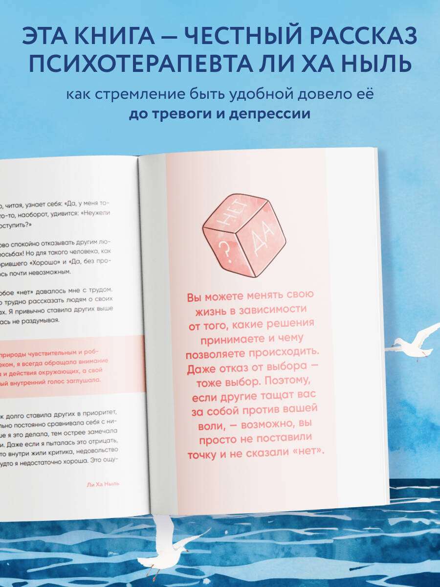 В этой книге психотерапевт Ли Ха Ныль рассказывает, как безотказность и желание быть для всех удобной довели ее до тревоги и депрессии. Чтобы выйти из этого состояния, она сосредоточилась на самоанализе и обнаружила, что первый ключ к счастливой жизни — искусство говорить «нет». Советы, которые дает Ха Ныль, помогут всем, кто испытывает трудности в отношениях и хочет вновь обрести потерянное самоуважение.
