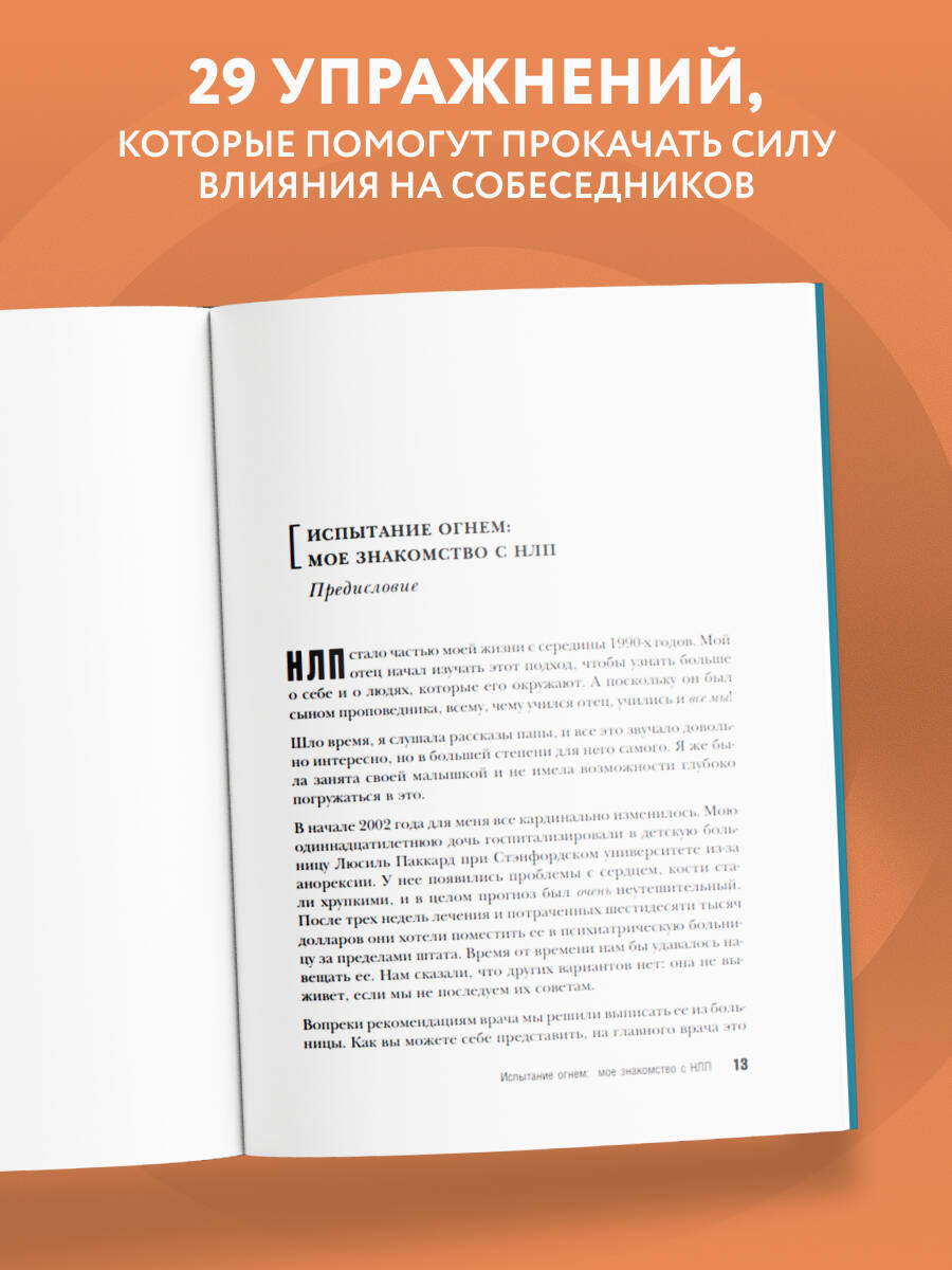 Эта книга — ваш практический путеводитель по нейролингвистическому программированию. В ней мастера НЛП Том Дотц, Сьюзен Сандерс и Том Хубияр предлагают 29 упражнений, которые помогут прокачать силу влияния на собеседников: убеждать, подчинять и менять реальность. А еще они предлагают 21-дневную программу, пройдя которую вы превратите страхи в мечты, а цели — в результаты.