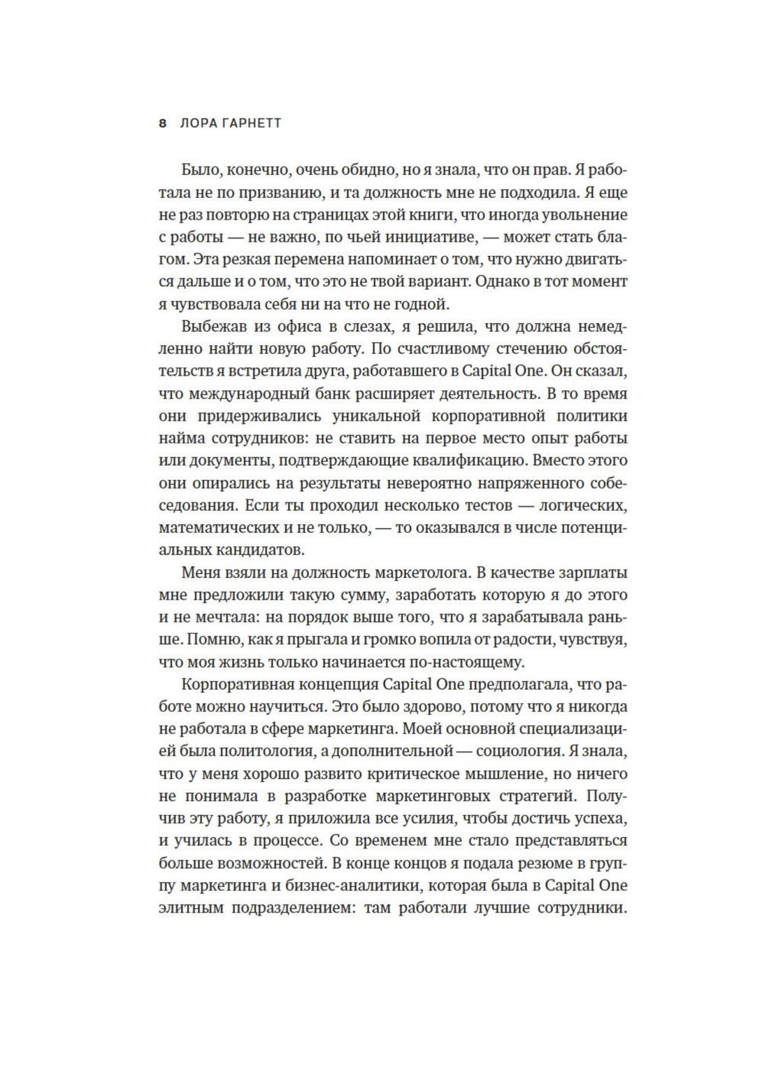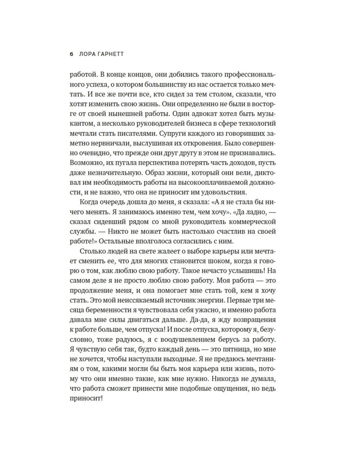 «Возможно, вы испытываете то же, что испытала и я на пути к карьере мечты. Возможно, работа вас не устраивает. Возможно, вы чувствуете, что не раскрываете свой потенциал. Возможно, вы пытаетесь стать кем-то другим. Моя цель — помочь вам осознать, кто вы есть на самом деле, и усвоить одну привычку, которая принесет вам ощущение счастья от работы и гарантирует успех». (Лора Гарнетт)