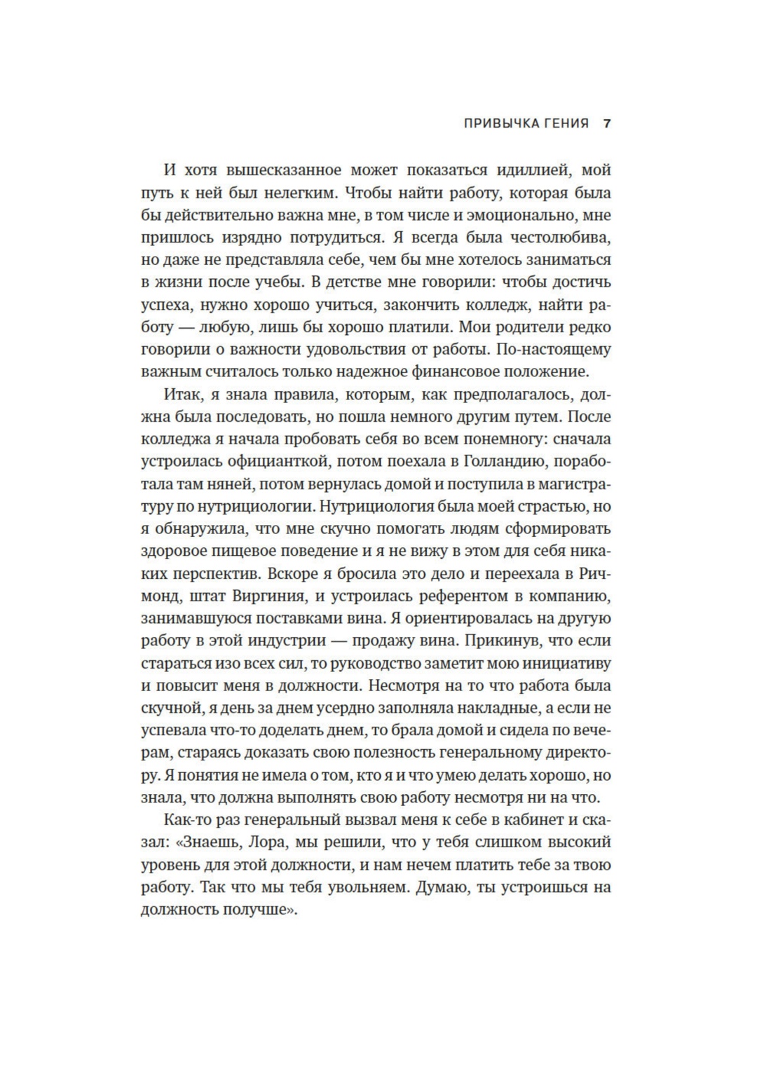 Автор этой книги — ведущий бизнес-консультант, разработчик стратегий эффективности и лектор TEDx, за годы сотрудничества с крупнейшими компаниями (Capital One, Pandora, LinkedIn…) пришла к твердому убеждению, что каждый человек в чем-то гениален и что работа может и, более того, должна приносить радость и удовлетворение. Ключ к успеху — в самопознании: если выявить свои уникальные способности и научиться применять их чаще, добиться впечатляющих результатов будет легко. Вооружившись «привычкой гения» и трекером продуктивности — уникальным инструментом, разработанным Лорой Гарнетт, — вы шаг за шагом построите карьеру своей мечты!