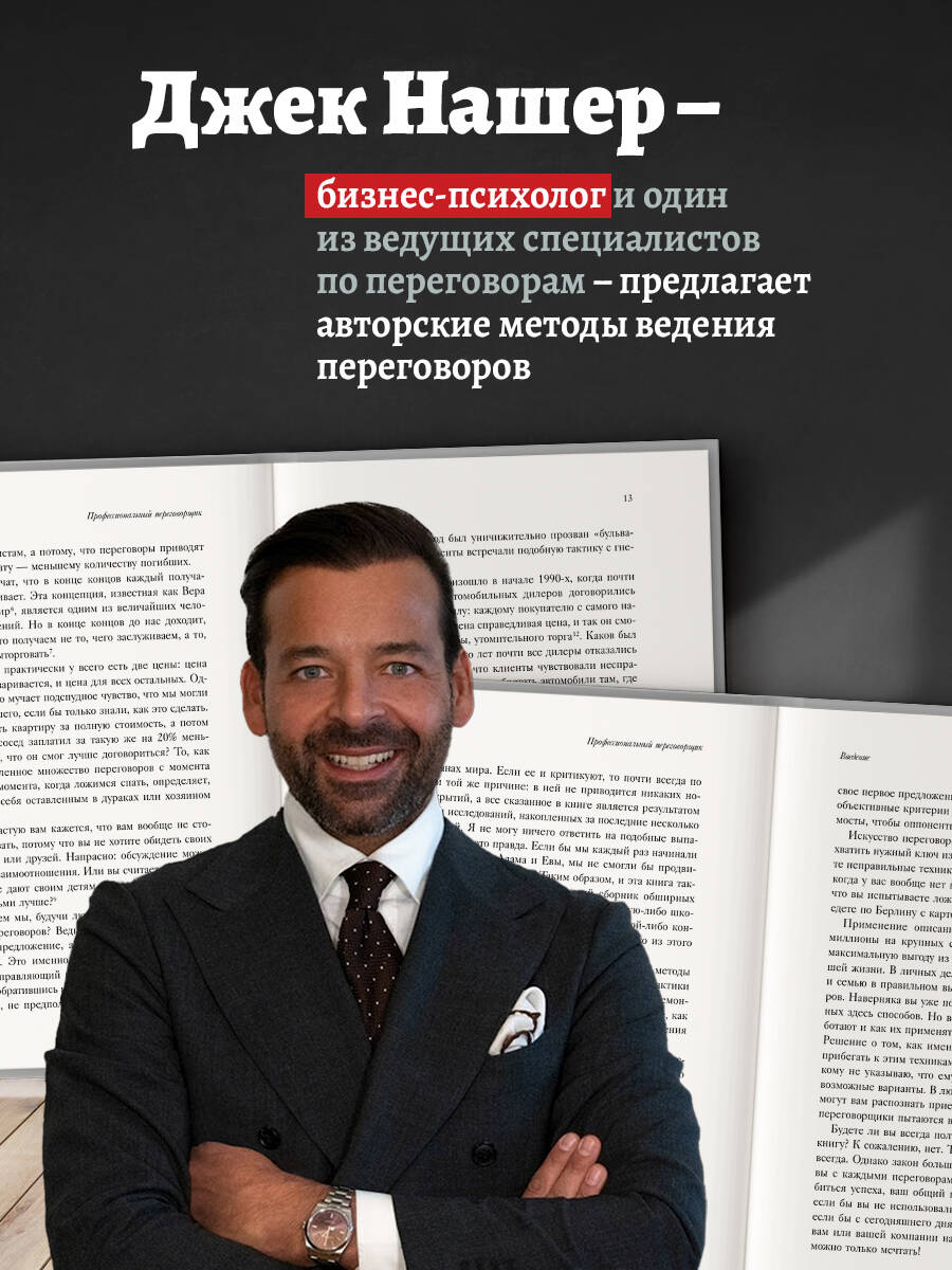 Мы получаем не то, что заслуживаем, а то, что сумели себе выторговать. Так считает Джек Нашер, бизнес-психолог и один из ведущих специалистов по переговорам в немецкоязычном мире. В своей книге он предлагает авторские методы ведения переговоров, которые работают независимо от того, обсуждаете ли вы раздробление авиакомпании или делите яблоко.