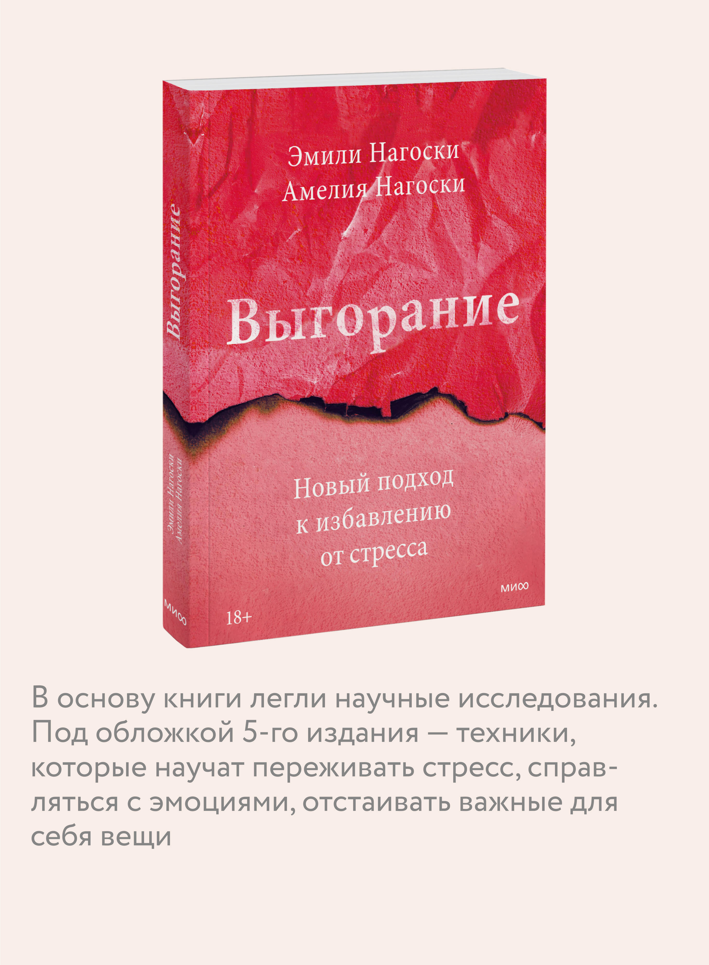 В ней вы найдете конкретные техники для разных аспектов выгорания и научитесь правильно проживать стрессовые ситуации, управлять эмоциями, давать отпор патриархальному укладу, сопротивляться навязанным стандартам красоты и отдыхать, не испытывая за это чувство вины. А еще сможете вспомнить или заново найти то самое, ради чего стоит жить и что будет поддерживать вас даже в самые трудные моменты.