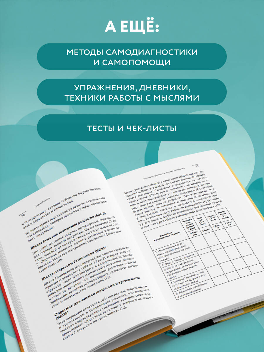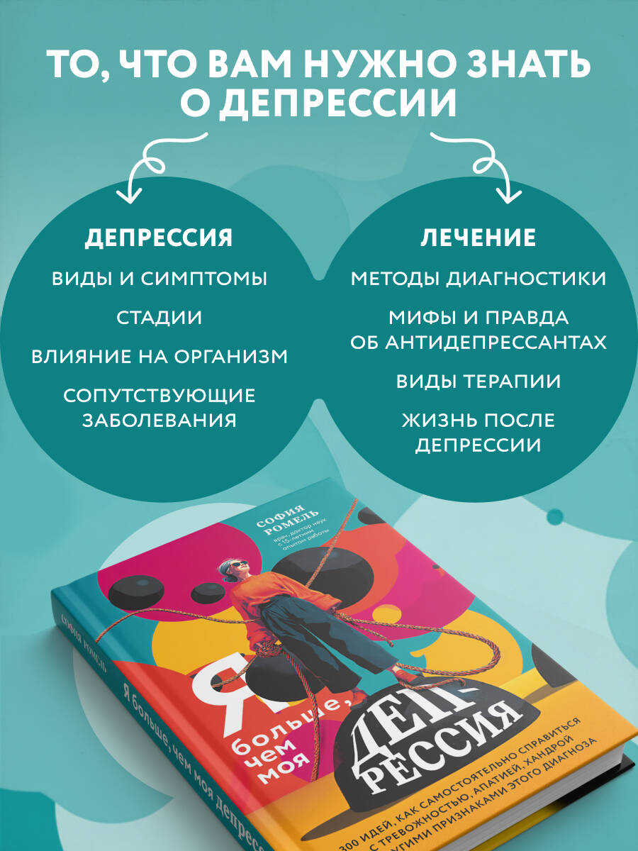 София Ромель — врач, доктор наук с 15-летним опытом работы в лучших европейских клиниках, в своей книге рассказывает о том, почему нарушения сна, апатия и снижение продуктивности — это не просто временные состояния, а также дает рекомендации, как избавиться от болезненных проявлений депрессии. Вы узнаете, как определить это заболевание, под какими масками оно может скрываться, как проявляется. Обсуждаются техники и рекомендации по выходу из депрессии, если вы всё-таки обнаружили у себя тревожные признаки. Автор развеивает мифы об антидепрессантах, рассказывает, как выбрать подходящие именно вам практики самопомощи и с чего стоит начать лечение. Книга содержит упражнения по работе с эмоциями и мыслями, техники для изменения поведения и советы для ежедневного восстановления. Эта книга поможет вам вернуть прежнюю продуктивность, обрести желание жить или избавиться от бессонницы.