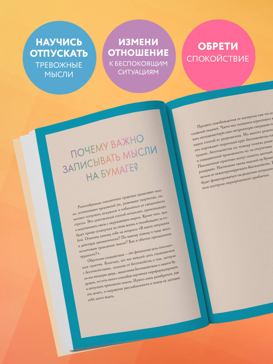 Обретение спокойствия — это финальная цель письменных практик. Стоит лишь раз разобраться, как работает этот метод, и ощущение расслабленности и покоя не заставит себя долго ждать. Благодаря письменным практикам вы научитесь смещать фокус с негативных мыслей и событий на позитивные — и, что важнее, превращать свои тревожные мысли в позитивные чувства или действия. Дневник очень прост в использовании: записывайте свои тревожные мысли на одной странице, а затем переосмысливайте их в позитивные чувства или действия на противоположной. Практикуйте этот метод регулярно, и результат не заставит себя ждать.
