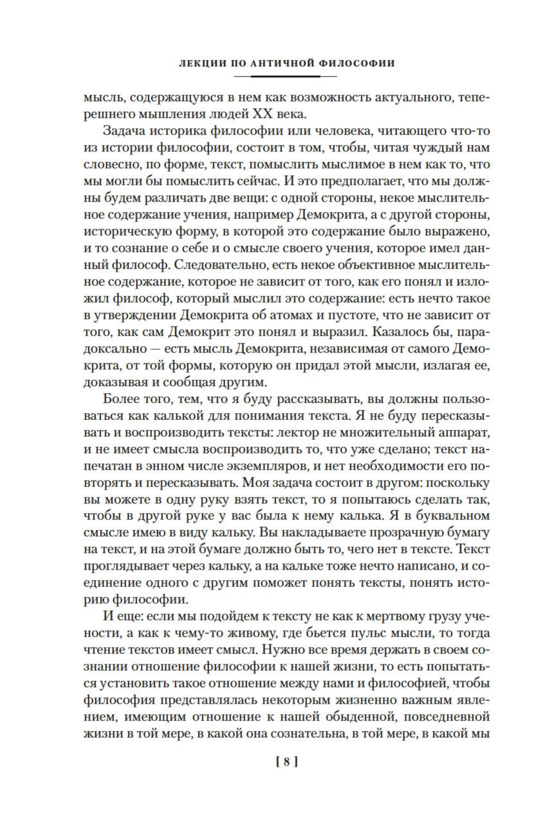 Мераб Константинович Мамардашвили (1930–1990) — один из наиболее значительных мыслителей второй половины ХХ века. В настоящее издание включены два курса лекций, прочитанных М. К. Мамардашвили студентам ВГИКа. В лекциях по античной философии (1980) в центре внимания проблема бытия, возникающая в пространстве древнегреческой мысли. В размышлениях греческих философов автор прослеживает фундаментальные принципы, лежащие в основаниях античного, а в последующем и европейского идеала мышления и понимания мира и человека. Лекции о современной европейской философии (1978–1979) посвящены основным сквозным идеям, которые являются стержнями философской культуры ХХ века. Обращаясь к работам Кьеркегора, Маркса, Ницше, Фрейда, Гуссерля, Витгенштейна, Хайдеггера, Сартра и др., М. К. Мамардашвили выявляет идеи, которые пронизывают все направления, являются их кристаллизациями, создавая тем самым некоторое единство стиля современной философской мысли.