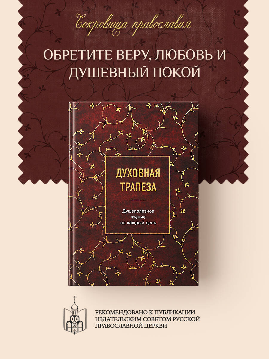 Верить, молиться и не отрекаться от любви — вот главная тема книги. Каждому в жизни нужны маяки, чтобы не поддаться страху и не потеряться во тьме. В «Духовной трапезе» собраны высказывания и цитаты, которые помогают обрести веру, любовь, душевный покой и найти опору в жизни.