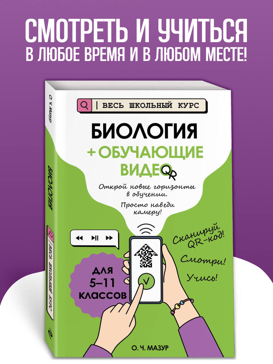 В пособии развёрнутый поясняющий материал по темам, особо актуальным для сдачи экзаменов, ОГЭ и ЕГЭ 2026, представлен в формате коротких видеороликов. Такой справочник для учеников 5, 6, 7, 8, 9, 10, 11 классов сделает процесс обучения живым и запоминающимся! Попробуй новый подход к обучению: смотри и учись в любое время и в любом месте! Также книга будет полезна для занятий родителей с детьми.
