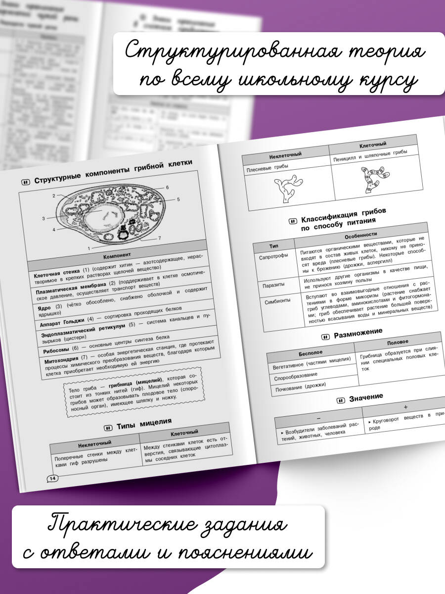 • структурированную теорию по всему школьному курсу биологии;