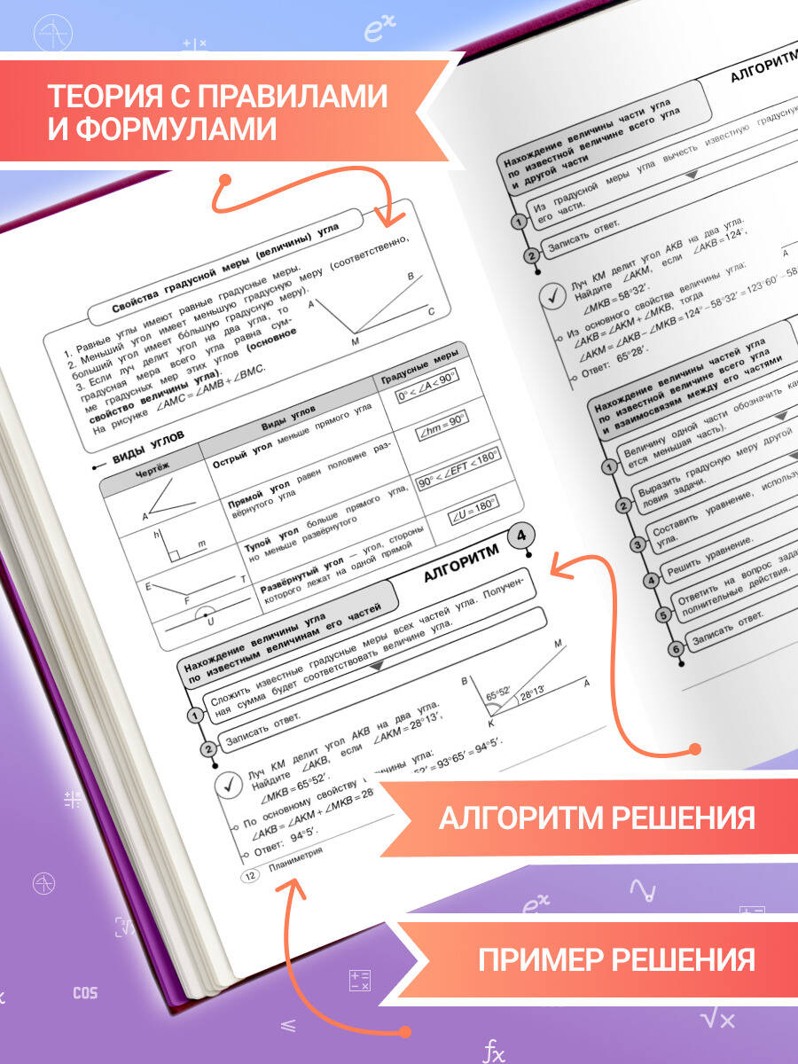 Перед алгоритмом приводится только важная теория по теме с необходимыми правилами и формулами. Сам алгоритм поделен на четкие шаги, следуя которым можно справиться с любой задачей по геометрии. После алгоритма расположены пример решения типовой задачи, а также задания для самостоятельного выполнения. Такой подход к занятиям поможет быстро выработать навык уверенного решения любых типов задач на уроках и контрольных.