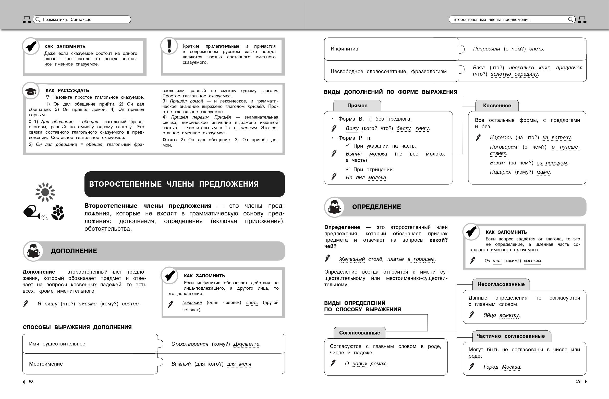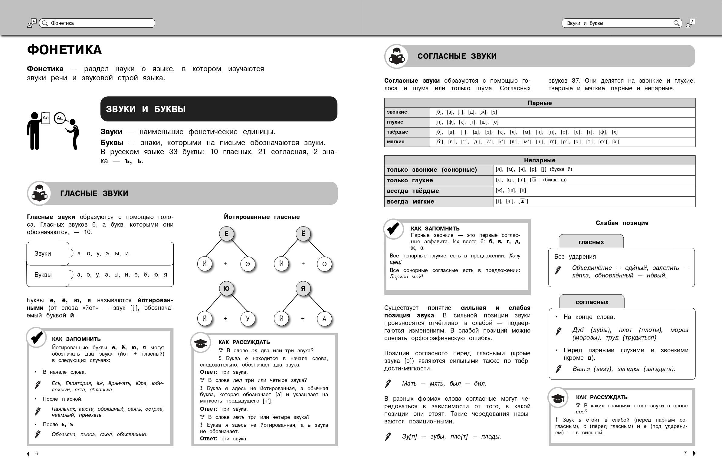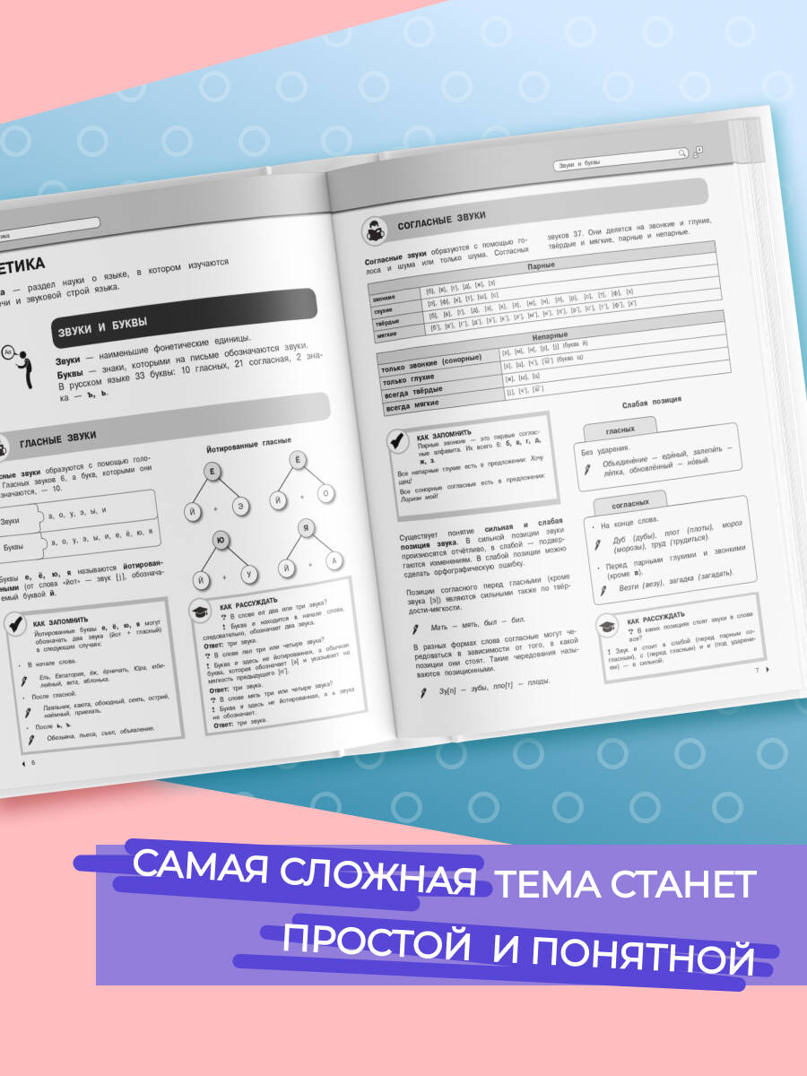 В громоздких учебниках порой бывает сложно найти ответ на какой-то конкретный вопрос. А в данном издании представлена действительно нужная и систематизированная информация, материал изложен последовательно, от простого к сложному, дополняется иллюстрациями, примерами, наглядными схемами и таблицами. В этой книжке для школьников можно найти все основные разделы предмета: «Фонетика», «Орфография», «Пунктуация», «Лексика», «Грамматика», «Культура речи». В конце пособия расположены орфографический и орфоэпический словарики, а также раздел для подготовки к написанию сочинений.