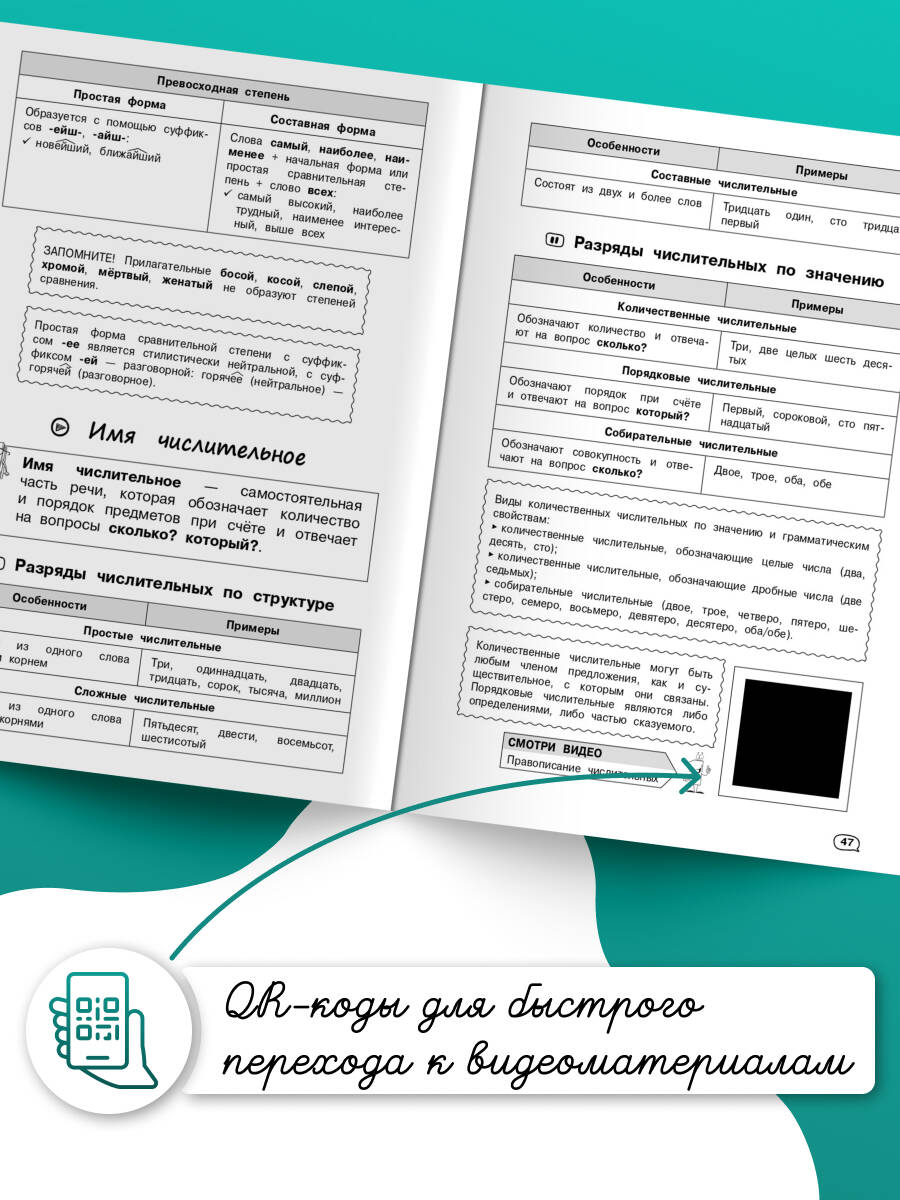 В пособии развёрнутый поясняющий материал по темам, особо актуальным для сдачи экзаменов, ОГЭ и ЕГЭ 2026, представлен в формате коротких видеороликов. Такой справочник для учеников 5, 6, 7, 8, 9, 10, 11 классов сделает процесс обучения живым и запоминающимся! Попробуй новый подход к обучению: смотри и учись в любое время и в любом месте! Также книжка будет полезна для занятий родителей с детьми.
