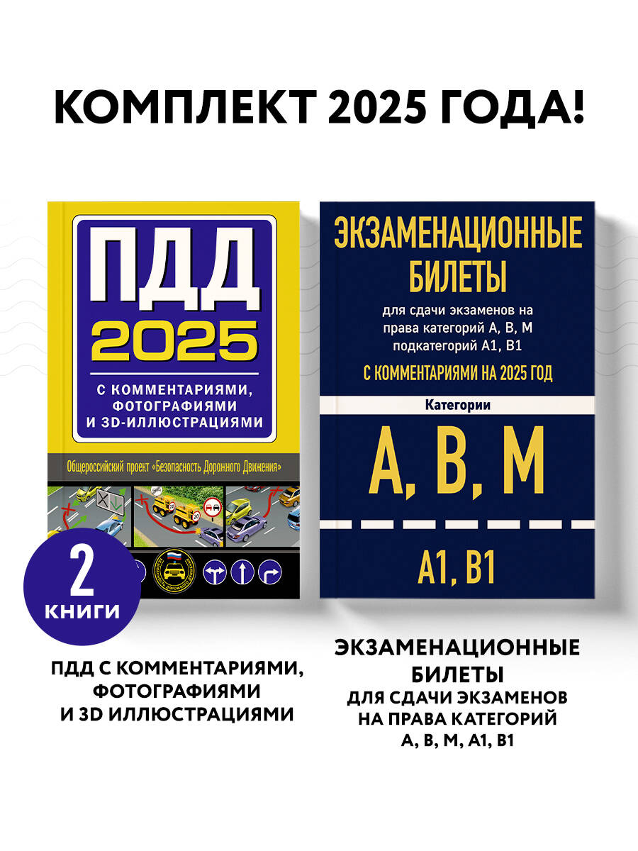 Комплект из 2х книг: Экзаменационные билеты АВМ + ПДД с комментариями 2025 (ИК)