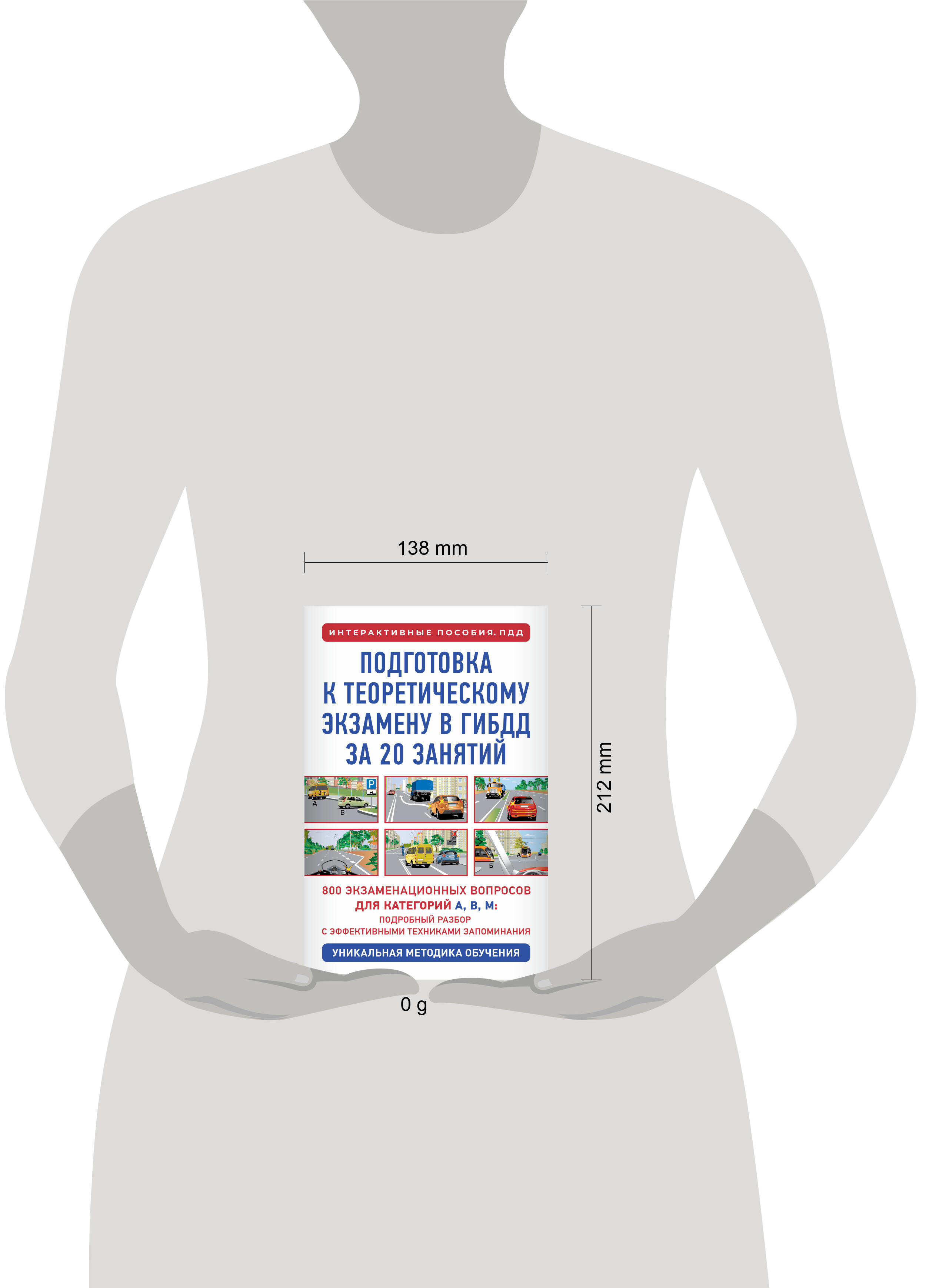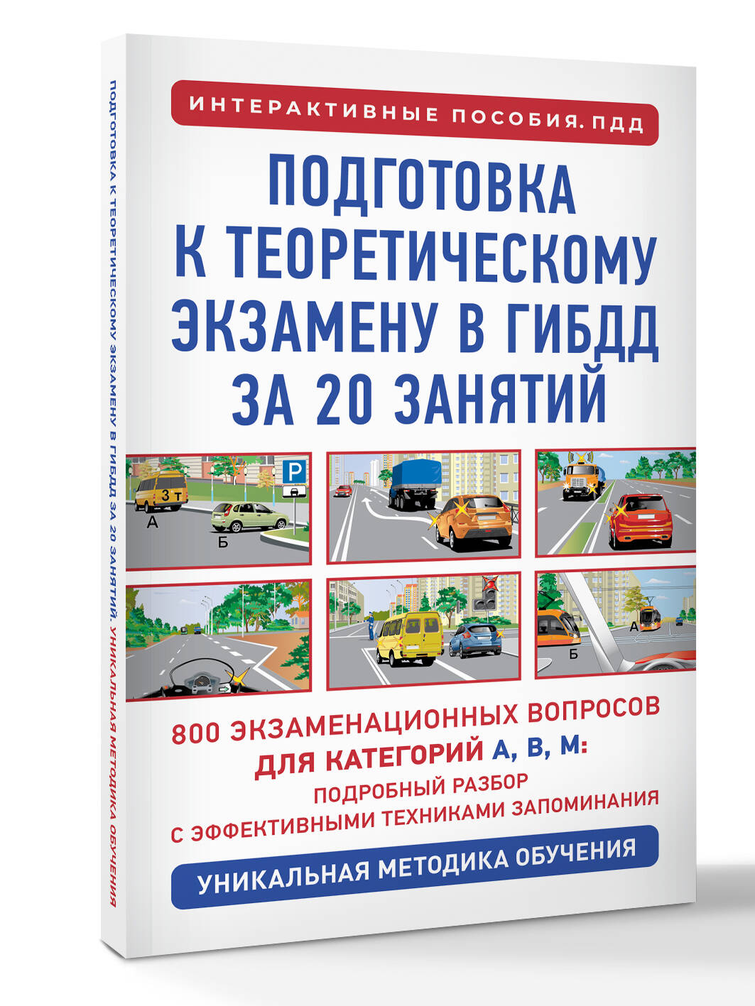 Эта книга — ваш надежный навигатор к успешной сдаче теоретического экзамена в ГИБДД. 20 структурированных занятий охватывают все 800 экзаменационных вопросов: с пояснениями, подсказками и разбором "подводных камней". Пособие помогает не просто запомнить ответы, а понять логику ПДД — чтобы знания остались надолго и стали прочной основой безопасного вождения.