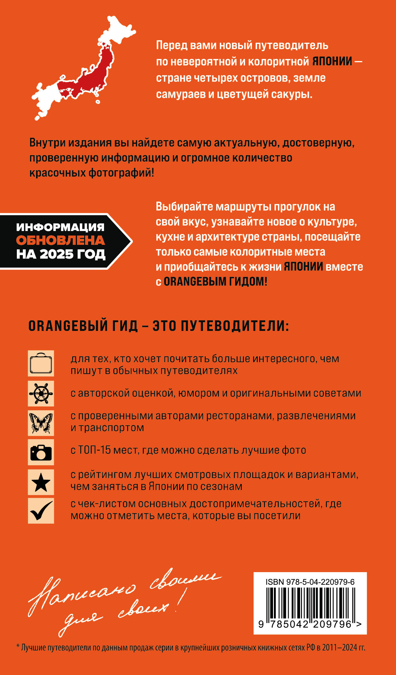 Удивительная богатая культура, тысячелетняя история и традиции, современные технологии и самобытность — все это Япония! Отправляйтесь в незабываемое путешествие по Стране Восходящего Солнца вместе с «Оранжевым гидом»!